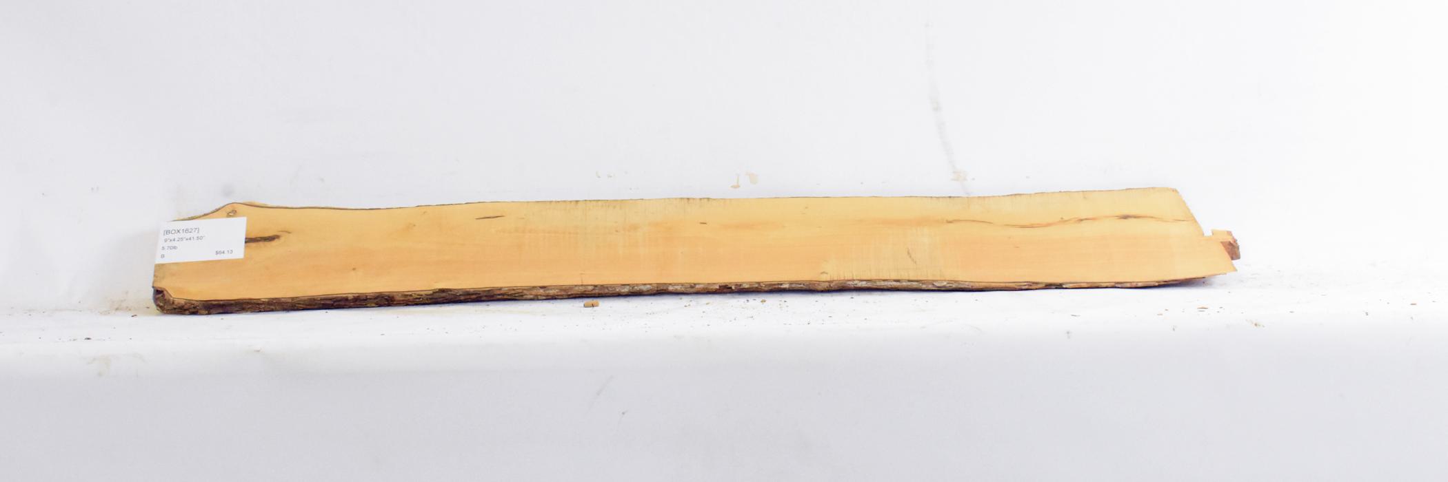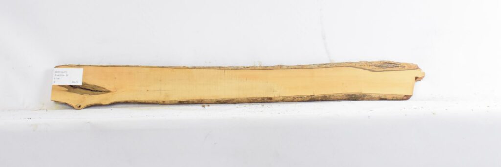 excellent figure, some skip planing, bark inclusions, natural curve may affect overall measurements