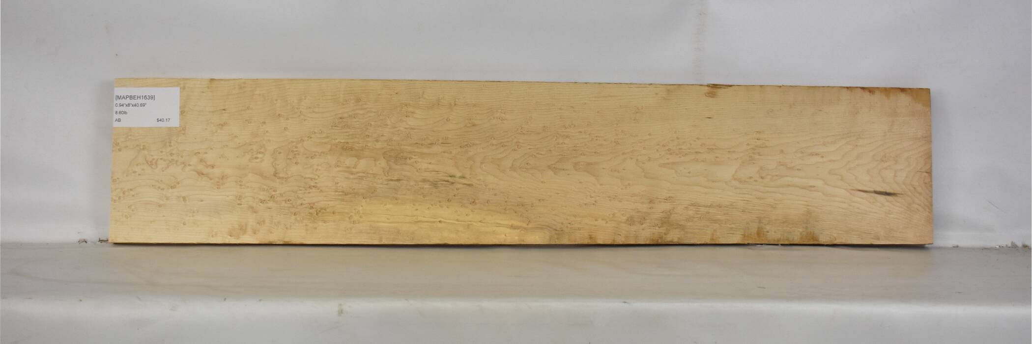 Birdseye Maple is another title which does not, necessarily, denote a specific Acer species -- although the bulk of what is sold is Sugar Maple (Acer saccharum) -- but rather a unique figuring that occurs in maple as a result of numerous small- to medium-sized knots accumulating in the wood. It remains one of the most coveted and sought-after of all figured maple varieties.Although it has never been scientifically proven, the prevailing school of thought is that the figuring is reportedly caused by unfavorable growing conditions. As the tree attempts to access more sunlight, buds begin to sprout in its trunk -- to try and grow more branches, to access more light -- but the tree lacks the requisite nutrients to support the growth and the new shoots are aborted, resulting in "birdseyes" (small knots) embedded in the tree's wood.There can be very large variances in birdseye size and content. Boards with larger concentrations of birdseyes are, obviously, more sought after and thus command greater prices than more sparsely decorated pieces. When sanded and finish-sanded, boards featuring somewhat larger birdseyes can have an almost 3D look -- like brown bumps, sitting up on a light golden surface.There have been tearout issues associated with birdseyes, as sometimes these tiny knots can wind up leaving tiny voids. There are also justified concerns that the tiny voids may occur sometime after the wood has been put into service. Because of this, some electric guitar luthiers shy away from using Birdseye Maple for fretboard wood, as slotting the frets can prove adventurous (if not downright painful:-)). Others, who do use it, will apply a finish coat of some type of protective lacquer over the fretboard when completing the neck.