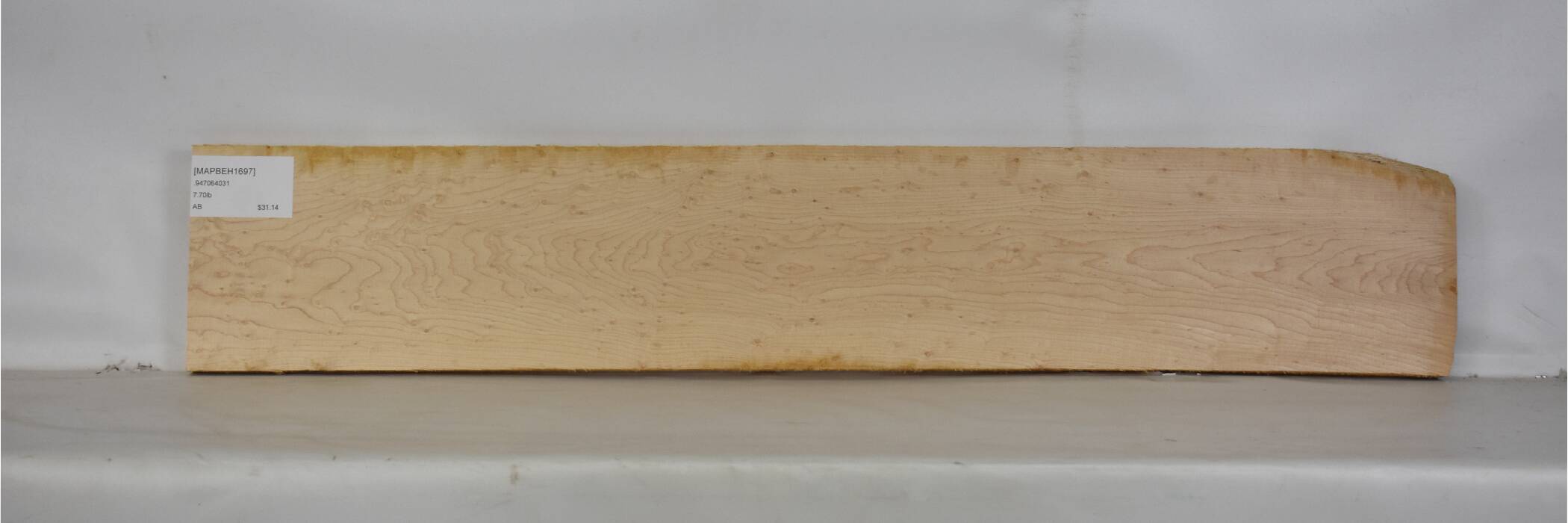 Birdseye Maple is another title which does not, necessarily, denote a specific Acer species -- although the bulk of what is sold is Sugar Maple (Acer saccharum) -- but rather a unique figuring that occurs in maple as a result of numerous small- to medium-sized knots accumulating in the wood. It remains one of the most coveted and sought-after of all figured maple varieties.Although it has never been scientifically proven, the prevailing school of thought is that the figuring is reportedly caused by unfavorable growing conditions. As the tree attempts to access more sunlight, buds begin to sprout in its trunk -- to try and grow more branches, to access more light -- but the tree lacks the requisite nutrients to support the growth and the new shoots are aborted, resulting in "birdseyes" (small knots) embedded in the tree's wood.There can be very large variances in birdseye size and content. Boards with larger concentrations of birdseyes are, obviously, more sought after and thus command greater prices than more sparsely decorated pieces. When sanded and finish-sanded, boards featuring somewhat larger birdseyes can have an almost 3D look -- like brown bumps, sitting up on a light golden surface.There have been tearout issues associated with birdseyes, as sometimes these tiny knots can wind up leaving tiny voids. There are also justified concerns that the tiny voids may occur sometime after the wood has been put into service. Because of this, some electric guitar luthiers shy away from using Birdseye Maple for fretboard wood, as slotting the frets can prove adventurous (if not downright painful:-)). Others, who do use it, will apply a finish coat of some type of protective lacquer over the fretboard when completing the neck.