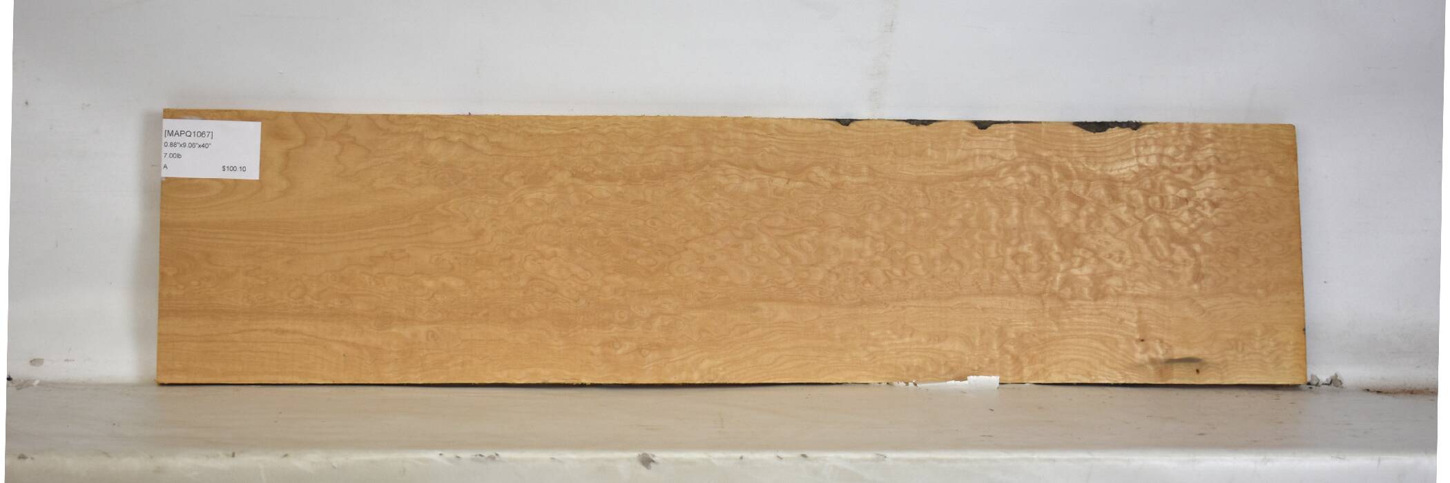 Small defect in surface and edge. Small bark inclusion. Figure one face.