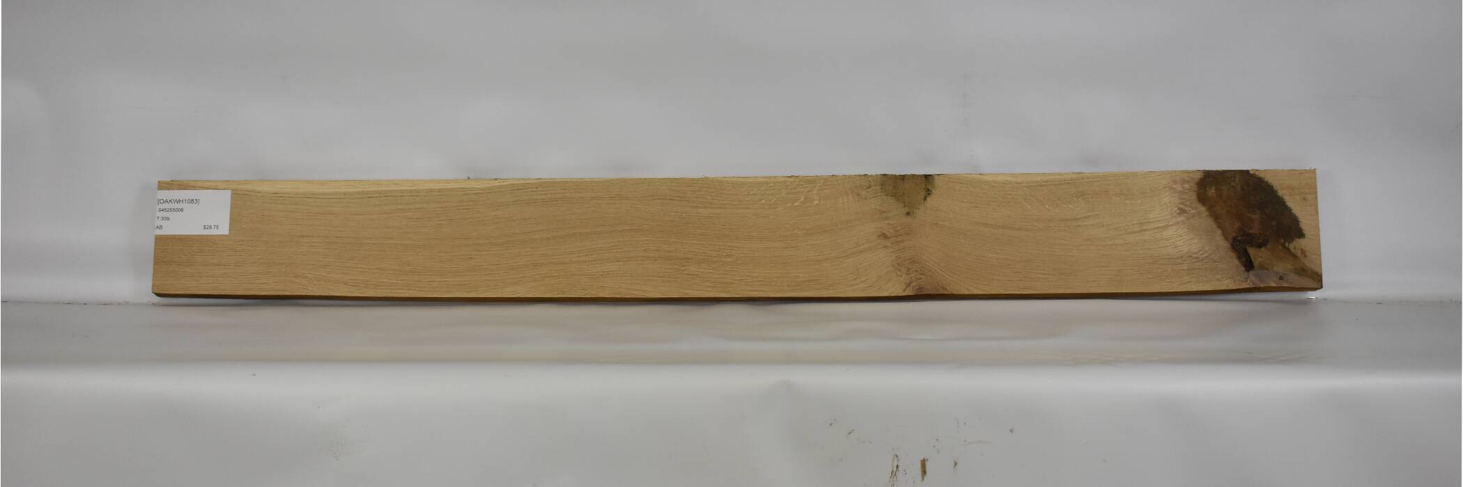 Width tapers to 4.5” from 5” at end. Knot with defects. Nice figure.