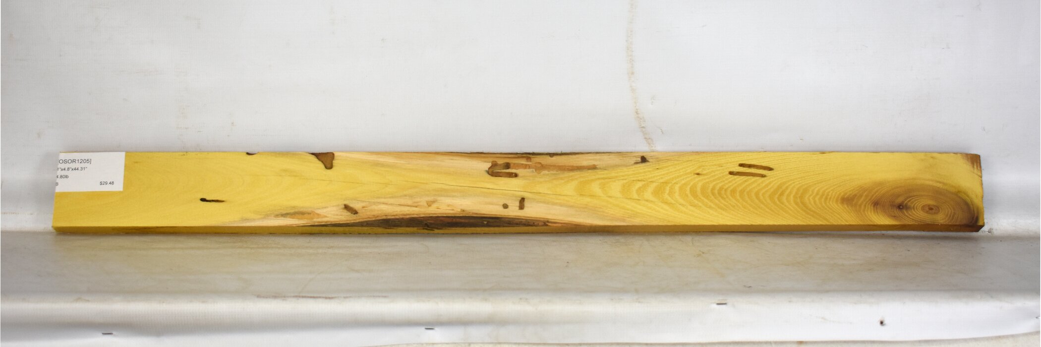 Width tapers from 4.5” to 4.25” Worm tracks,Checks,Surface defects,Bark inclusions