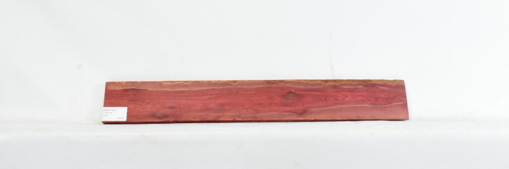small check on end, sapwood on edge, knots, small bark inclusions, very beautiful deep red colored wood.