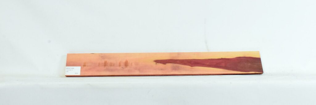 edge defects, knots, excellent deep red color, small bark inclusions, minor planing defects.