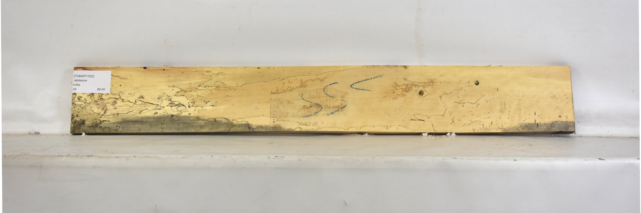 Width tapers from 4.56” to 4.94” at end. Worm tracks. Defect on edge.